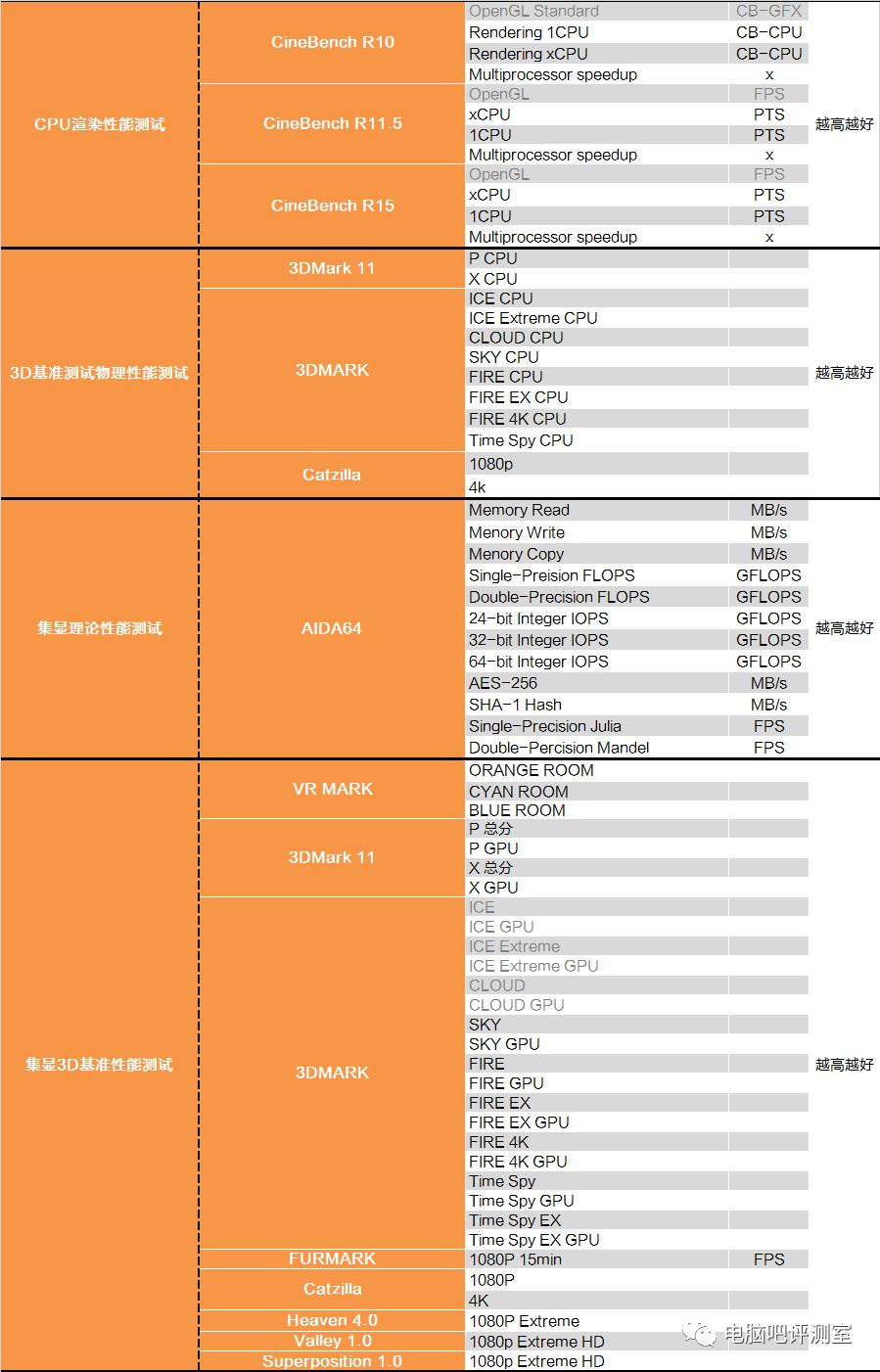 · 集成显卡测试:包含集显理论性能测试、集显基准测试软件、集显专业软件基准