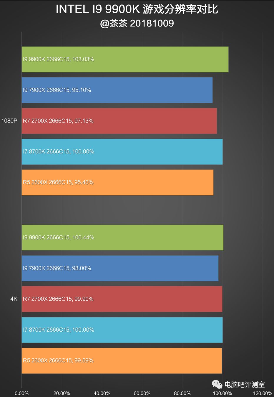 游戏测试中历来有个很大的争议就是关于分辨率,所以这里就直接拆开统计,主要是观茶1080P下的性能差距。在1080P下I9 9900K相比I78700K会领先3%,相比R7 2700X会领先6.1%。