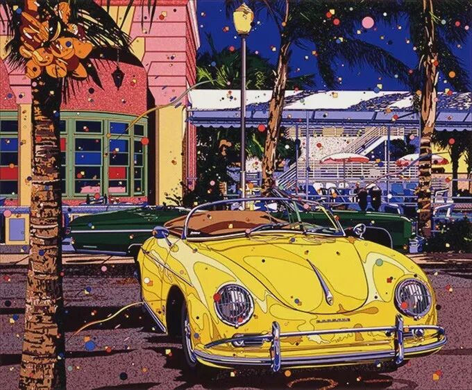 (他的画作引人注目,将80年代波普艺术的氛围与日本绘画的色彩融为一体!)