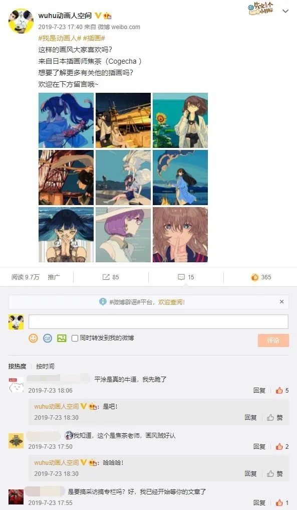 2019年7月,第一次看到这位画师的作品时,wuhu便和大家推荐了,(之后一直准备出一期专题介绍,但是由于各种原因搁置了……)那时,在评论区也看到了大家和wuhu一样,都对他的作品和画风喜欢得不行!有的人一眼就认出了他!有的人手机、电脑里的壁纸都存了好多张,才知道原来是这位画师,以及 他的名字叫焦茶。