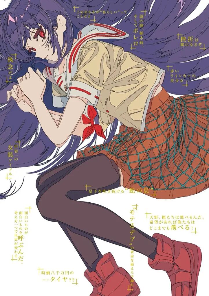 焦茶说自己最喜欢的动画师就是吉成曜,中村丰和本田雄,他在欣赏这些优秀动画人的作品时也关注到了原画的创作。动画原画的清晰度几乎取决于线条和颜色,而这两种又恰巧就是他最擅长也最看重的两点,所以他希望能够将动画原画绘制的精髓融入自己的绘画中。