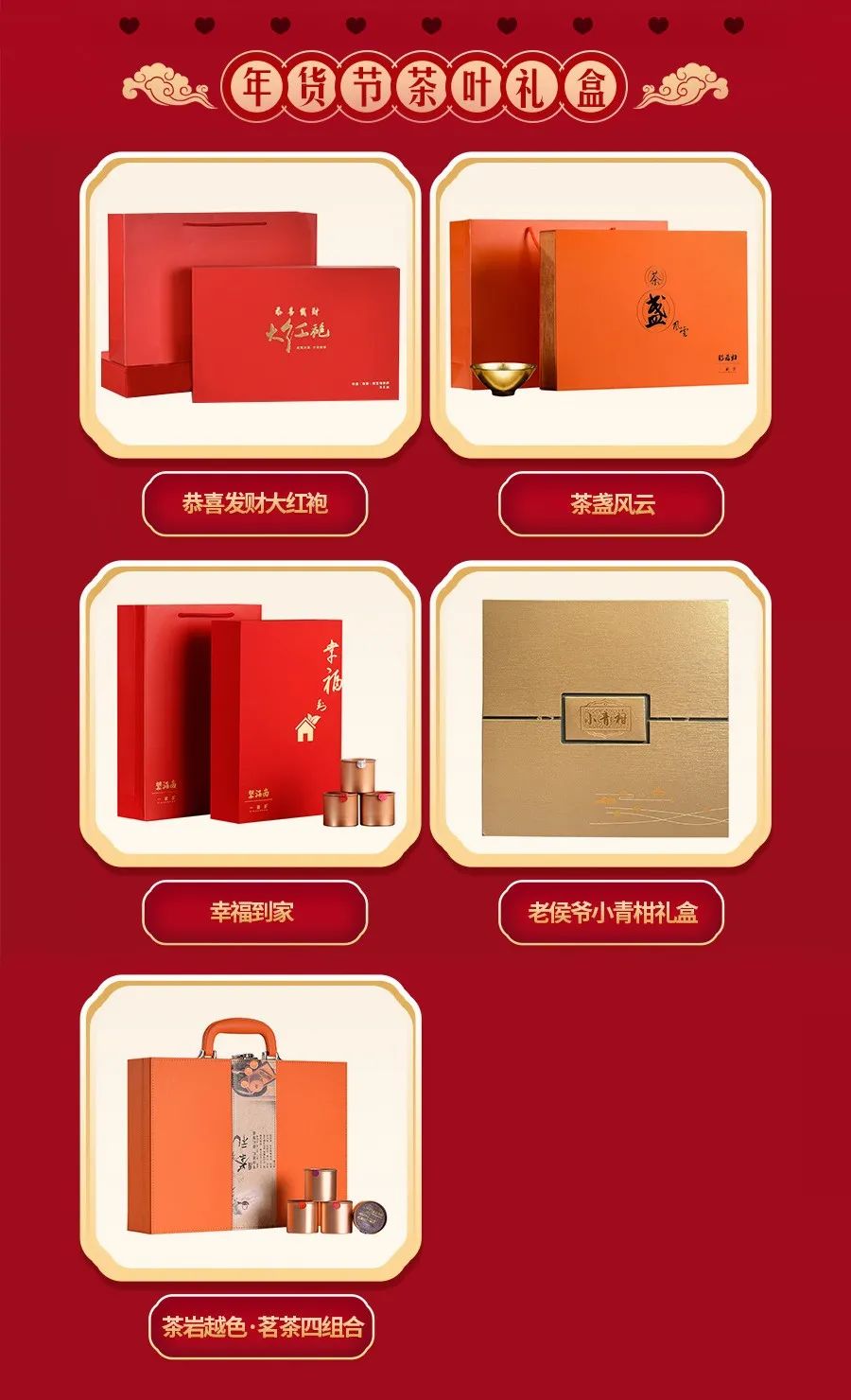 1.恭喜发财大红袍:“茶中状元”,干茶呈乌褐色,汤色透亮,香气馥郁,一盒18包,配备1个茶盏;