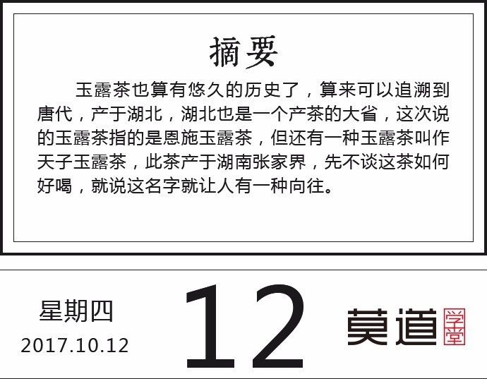 今天咱们说一款特别的茶,玉露茶。一次听这个茶,就觉得名字很唯美,让人不由就记住了,因为名字真的很好听啊!
