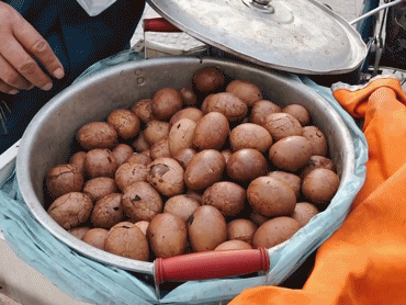 现在的茶叶蛋1元1颗。随着师傅的叫卖声,路边不少的老顾客都会买上几颗。差不多2个小时左右,这200多个热腾腾的茶叶蛋就全部卖完了。