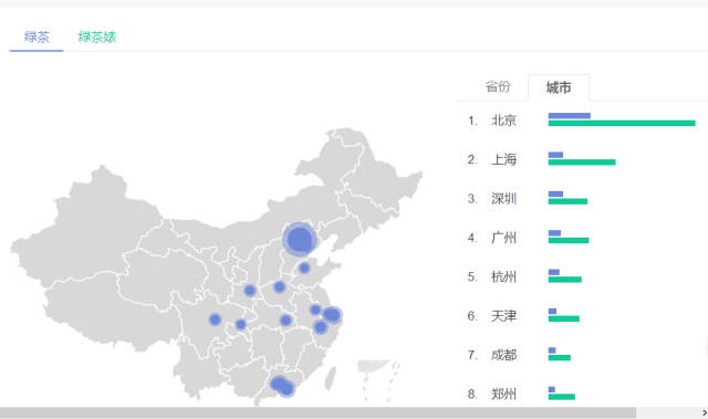 各大城市的情况都差不多,仍然是“绿茶婊”的热度完胜