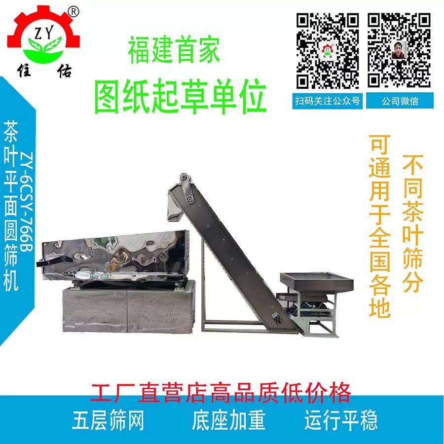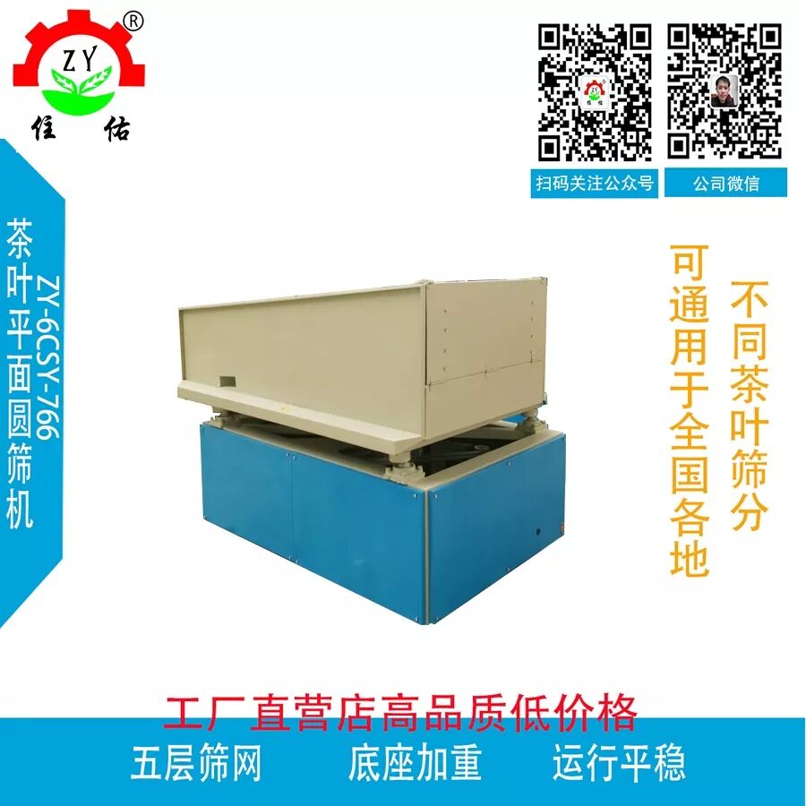 这是分离条形茶长短和圆形茶大小的筛分机械,用于区分茶叶的长短和大小。平面圆筛机借助偏心机构带动筛床平面回转运动,使得筛分的茶叶在筛床筛网上滑动,长短、大小尺寸小于筛孔尺寸的茶叶穿过筛孔下落,大于筛孑L尺寸的茶叶沿筛网面从高处滑到低处,集中到出茶口处出茶。