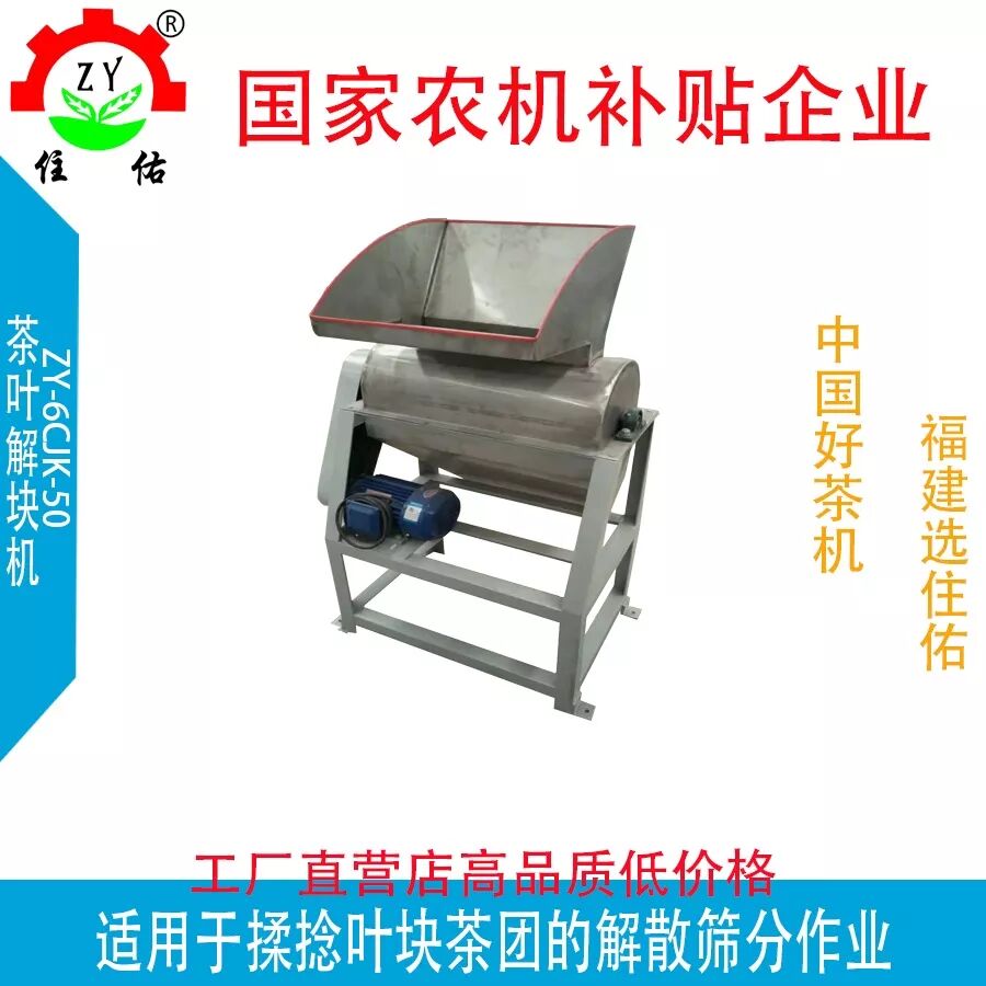 茶叶经过揉捻机或者成型机加工后,通常会结成团状或者块状,有的成为紧实的茶块,解块机可使成块的茶叶均匀快速的松散,提高茶叶整体品质,方便后续的加工。