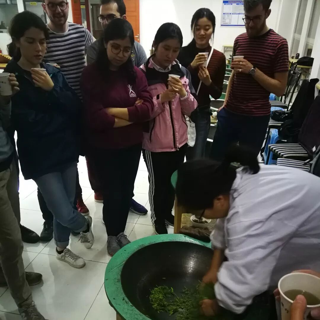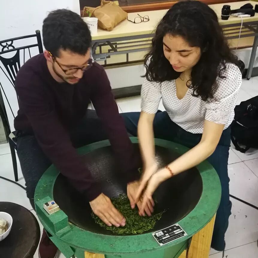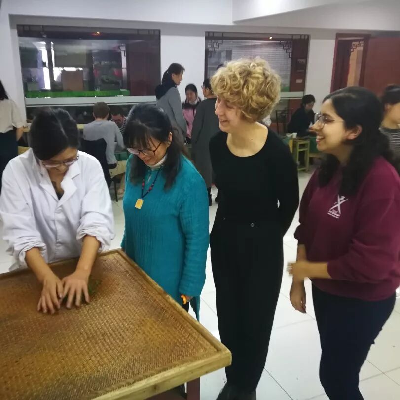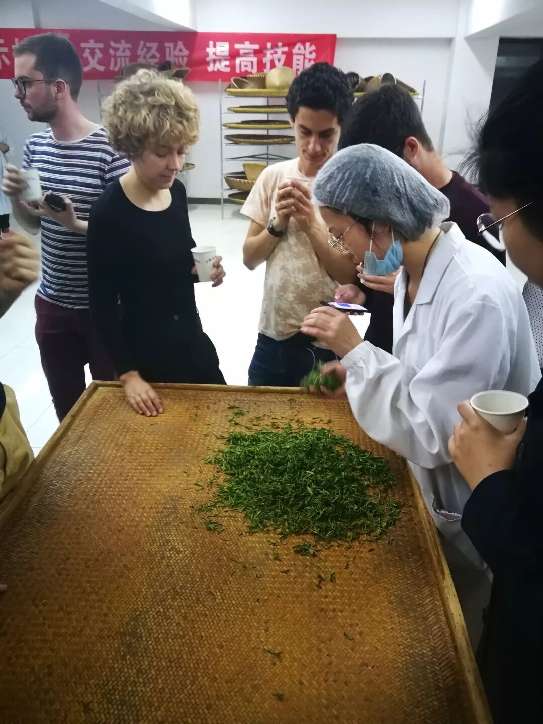 在夫妻二人的指导下,丝路成员了解到雨花茶的制作过程——杀青、揉捻、整形、干燥。