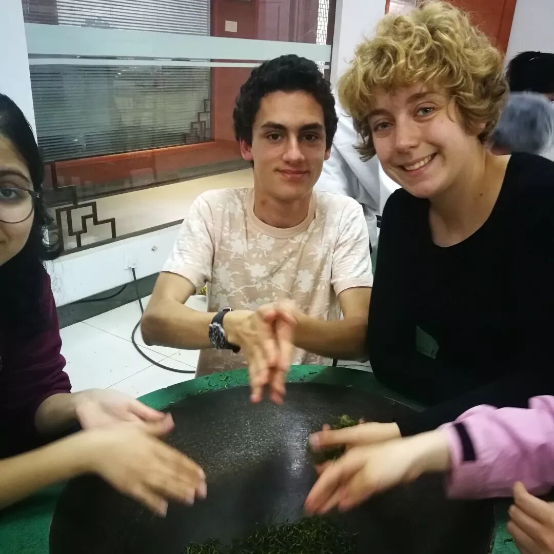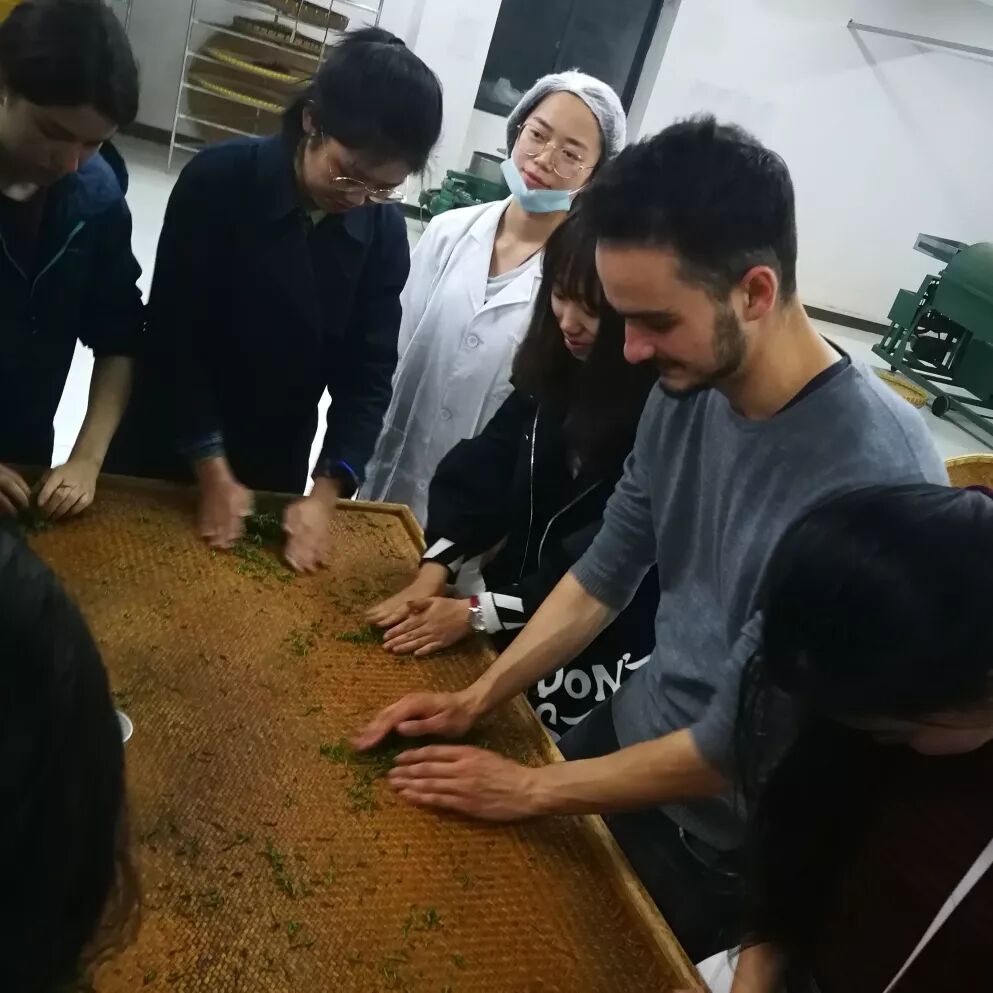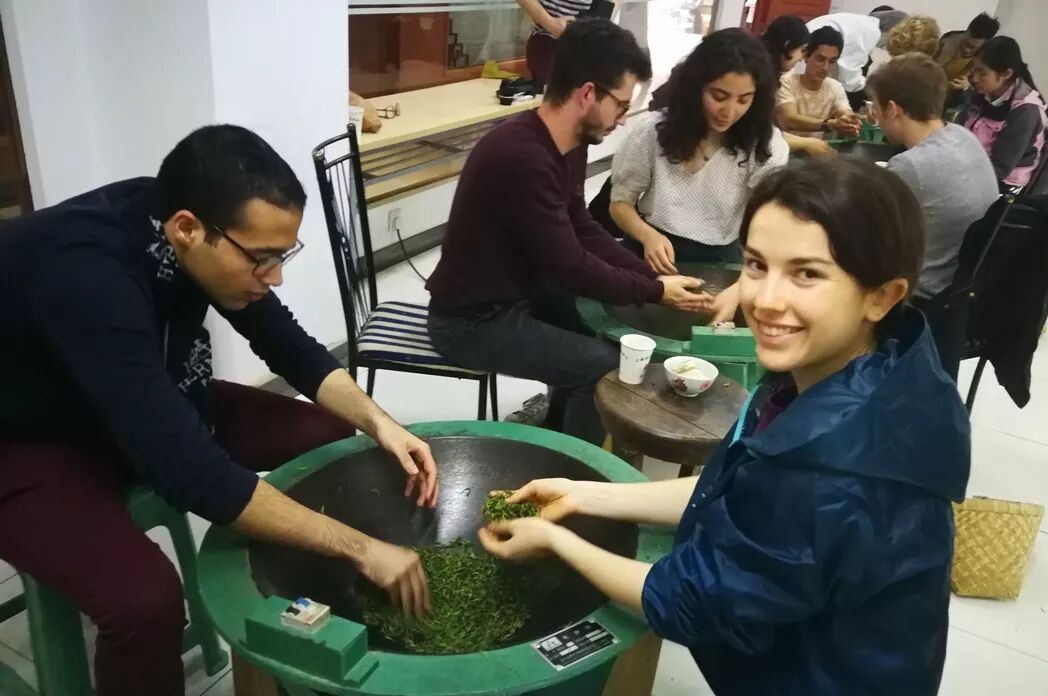 在夫妻二人的指导下,丝路成员了解到雨花茶的制作过程——杀青、揉捻、整形、干燥。