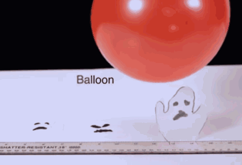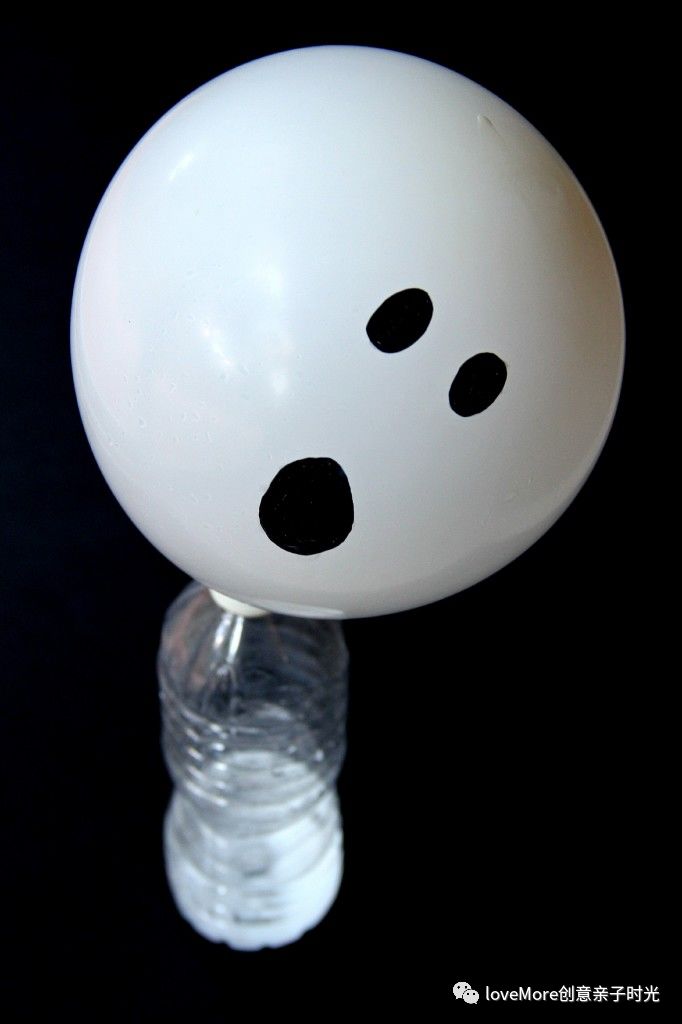 跳舞的幽灵准备一个气球,再画几个小幽灵,并把尾部用双面胶黏在桌子上一点。