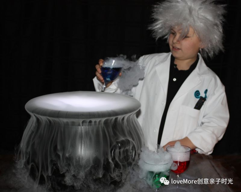 在罐子里倒点水,然后戴上手套把干冰放进去。小巫师快告诉我们,这煮的是什么神秘药水?