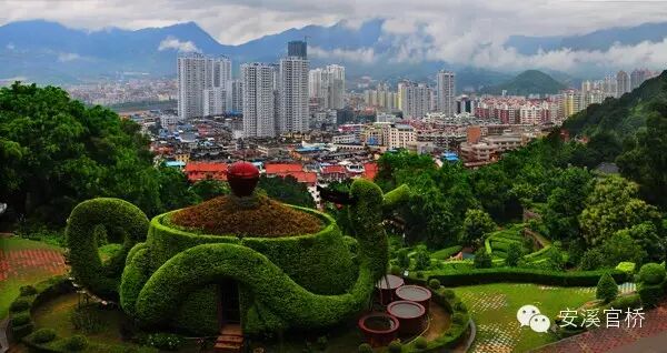 穿过龙凤精舍的地下通道,便到了沉香谷。这里有100多平方米的平台,供你小憩,品香茗,听南音。站在台上居高望远,俯视全城,安溪这块飘香的土地上的景致,美不胜收,让人心胸开阔,神清气爽。