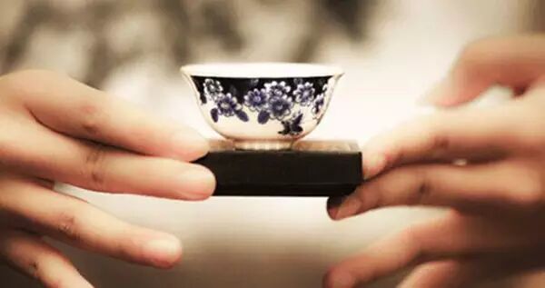 持杯手势:右手持杯,用拇指食指夹杯,中指托住杯底,并舒展开兰花指(男士就不需要有兰花指了)。这样的持杯手势称作“三龙护鼎”,三根指头誉为“三龙”,茶杯如鼎。
