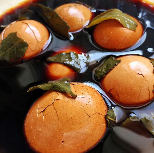3、煮好放凉的茶叶蛋若需加热,只需将汤汁烧开,熄火后再将蛋放入浸泡即可。