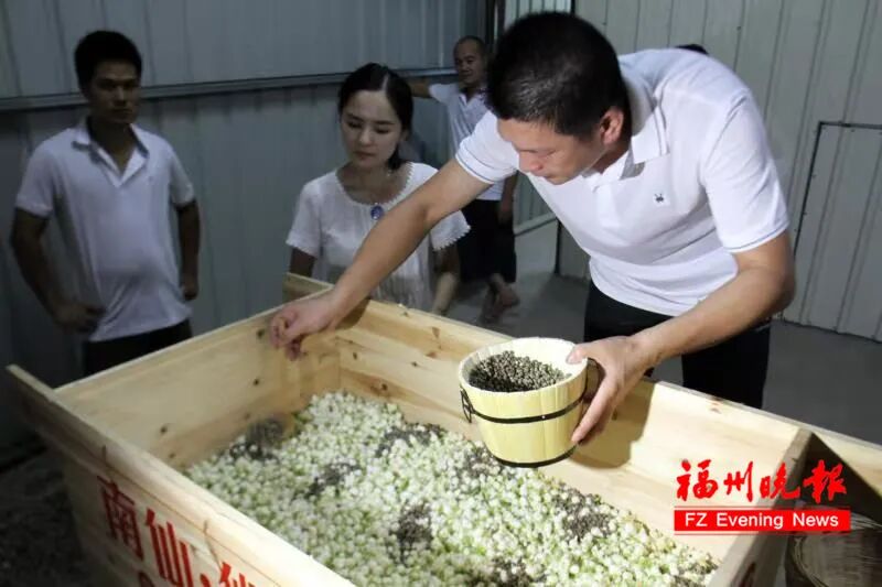▲翁文峰在加工茉莉花茶。记者 叶诚 摄