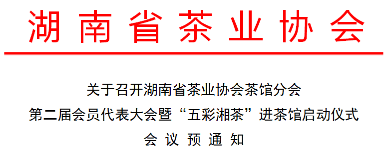 关于召开湖南省茶业协会茶馆分会第二届会员代表大会暨“五彩湘茶”进茶馆启动仪式会议预通知