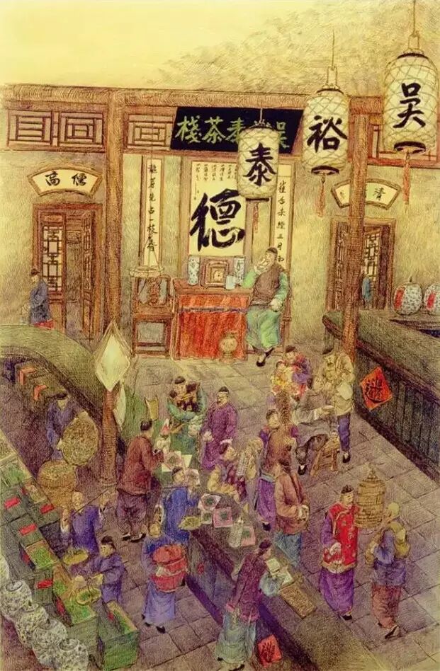 老舍的《茶馆》是以清朝光绪年间,京城北新桥外的一家名叫“吴裕泰”的茶栈为原型,店掌柜是徽州商人吴锡卿。