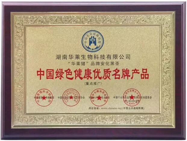 艰辛的付出不是没有回报的,在华莱的荣誉榜上,我们看到一长串璀璨夺目的荣誉称号:“中华人民共和国地理标志保护产品” 、“湖南省著名商标”、“湖南省质量信用AAA级企业”、“标准化茶园基地建设特等奖”、“湖南省质量服务诚信承诺示范单位”、“湖南茶业创新奖”、“ISO9001国际标准认证证书”、“中国绿色食品”、“QS质量管理体系认证”、“保健食品生产企业生产许可证”等。