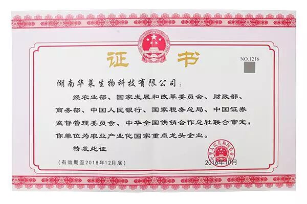 2016年10月,公司被认定为农业产业化国家重点龙头企业。标志着公司的产业规模、示范带动作用迈上了一个新台阶。