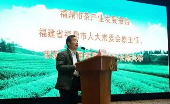 福鼎市茶业发展领导小组组长陈兴华作福鼎市茶产业发展报告