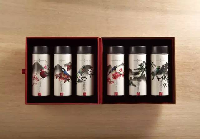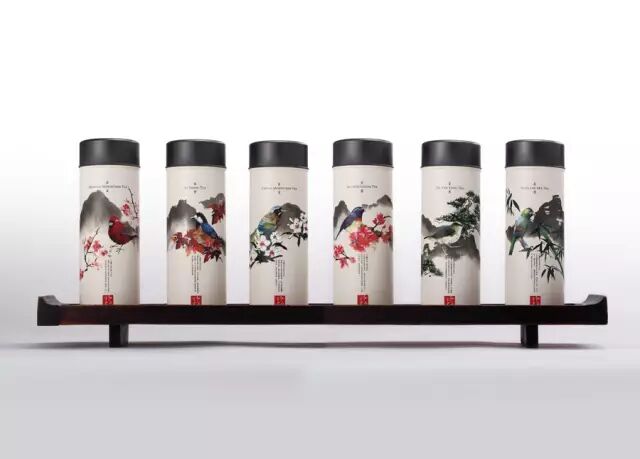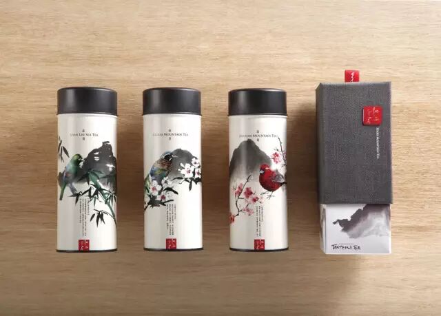 在台湾有一款高山茶,采用了类似笔筒的古风设计,山水水墨画的写意风格,即有中国茶文化固有的色彩,更增添了茶的质感。