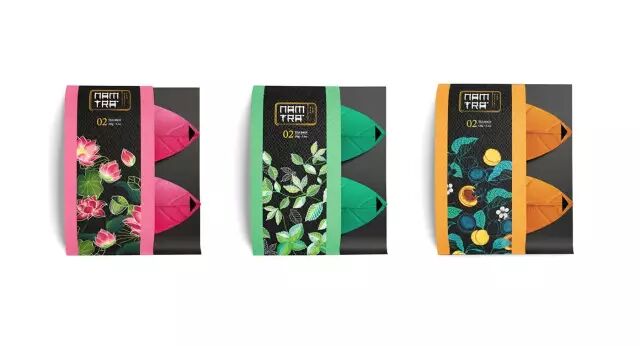 如今的茶叶不仅仅是一种饮品,也是人们包装礼物和表达赞赏他们爱的人的方式。 越南的茶品牌Nam Tra结合了这种消费心理,将杏、莲花、雏菊、薄荷叶等的纹理和现代设计的结合,为茶产品带来了新的形象。