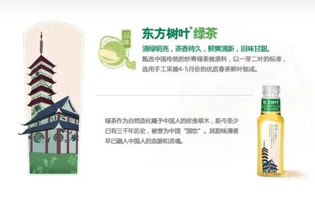 当然,中国也是有好的茶饮品设计的,农夫山泉的东方树叶的包装形成了一种特有的中式风格。