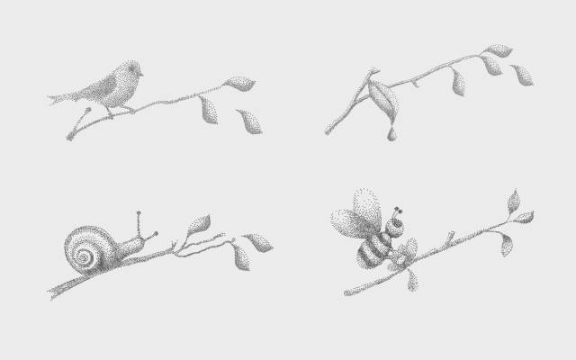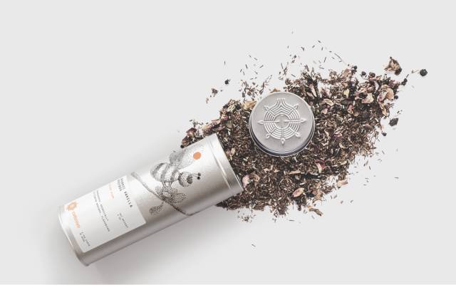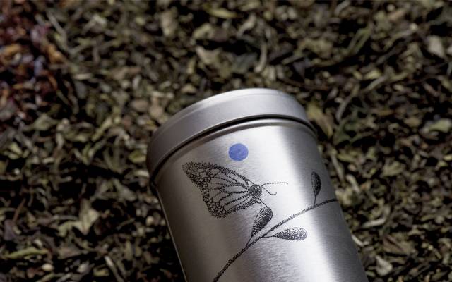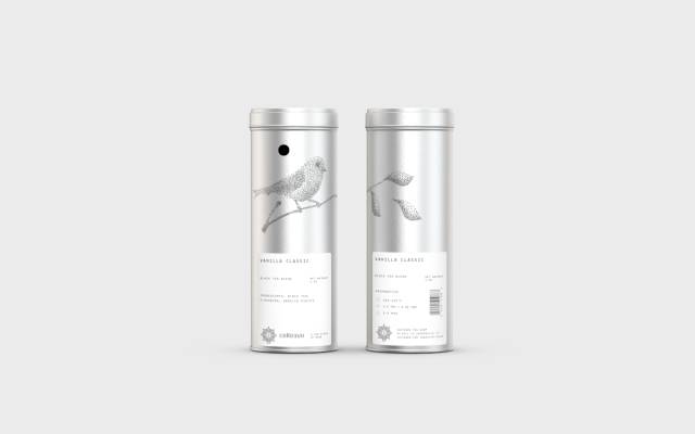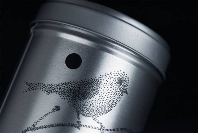 culteavo将自家的茶叶用锡罐作为包装,每一个罐子上的都有小鸟、树叶、蜗牛、蝴蝶等自然图案。采用素描的手法,根据圆点之间疏密关系排列出来。而罐子下面的白色标签则写清了使用方式,都使包装显得十分素雅。