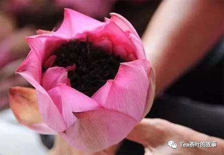 剪去嫩莲蓬和花蕊部分,给茶包留出足够的 空间。放入茶包,让茶包回归到原先花蕊的位置。慢慢托着打开的花瓣,轻轻揉搓,她会缓缓合上,装入茶包的荷花静养在水中,第二日这荷花窨茶就能喝了。