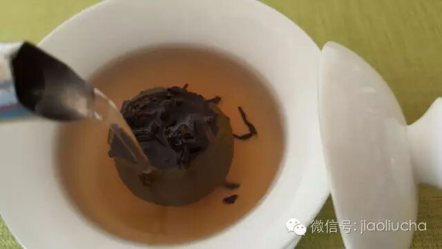 另一个方式就是投茶之前,取下果的小盖,在柑果上部稍用力,把柑果捏裂几个开口,然后再冲泡。也能很好的达到滋味浓郁、柑茶味协调的平衡,同时由于稍裂开口,更能闻到果的浓郁果香、柑油香,特别是的喜人。