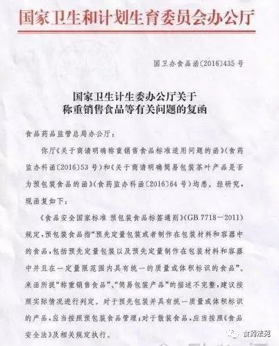 每日一复函简易包装的茶叶能否认定为预包装食品