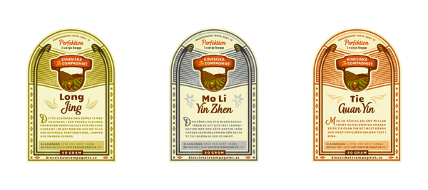 ↑三个标签上分别是“龙井”“茉莉”和”铁观音“,这款包装的亮点在于茶标签的视觉设计上,不同种类茶叶的形状和颜色都简单易懂地描绘在了标签上。