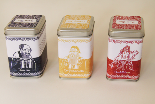 ↑以中国的”仁“,”孔子之道“为主题的中式茶包装,与包装相匹配的牌坊模型非常有意思。