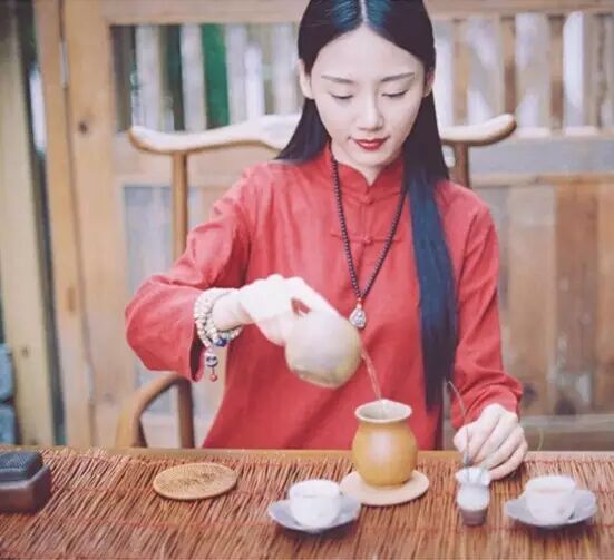 美女喝茶图片5、娴静的妆容,具有中国传统特色的着装,从容的泡茶手法,图片中的女子一举一动都在向人们传达一种虚静、空灵的心境,一种茶的诗情。