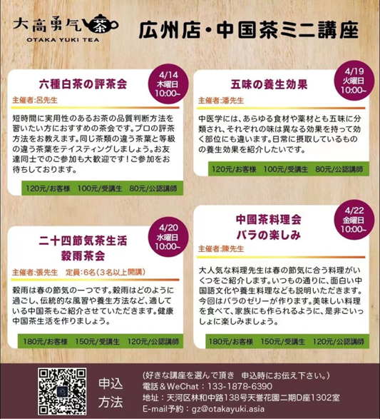 4月内に入門講座を修了した方へ、100元ほどの中国茶をプレゼント!