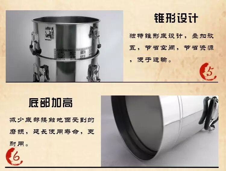 锥形设计,同规格可叠放。运输时节省运费。装上茶叶后,仓储时可同规格叠放,节省空间。