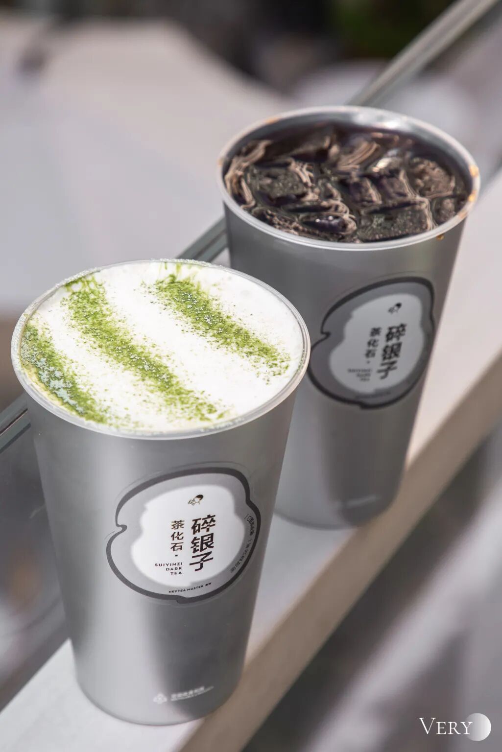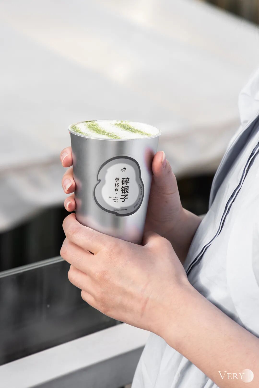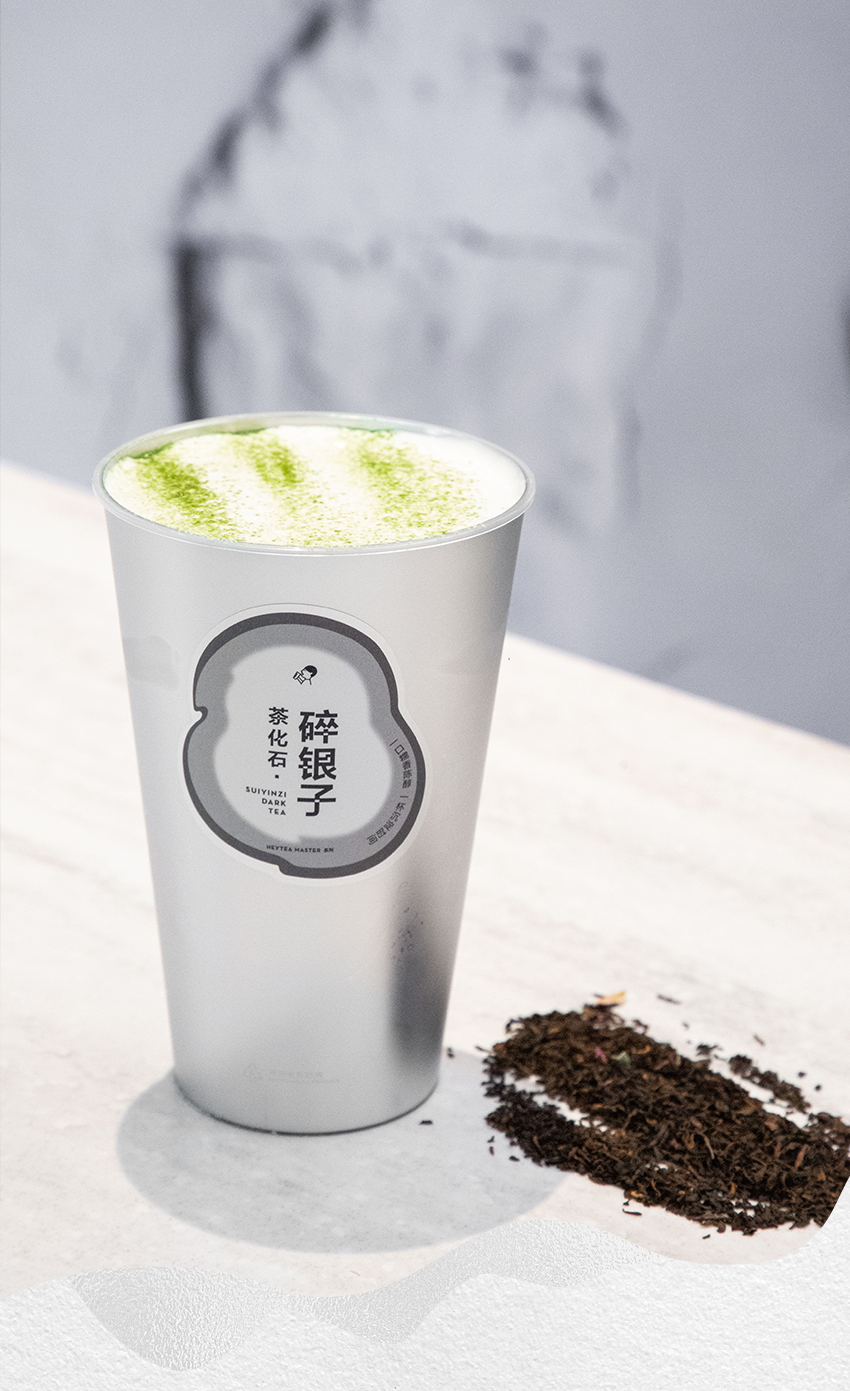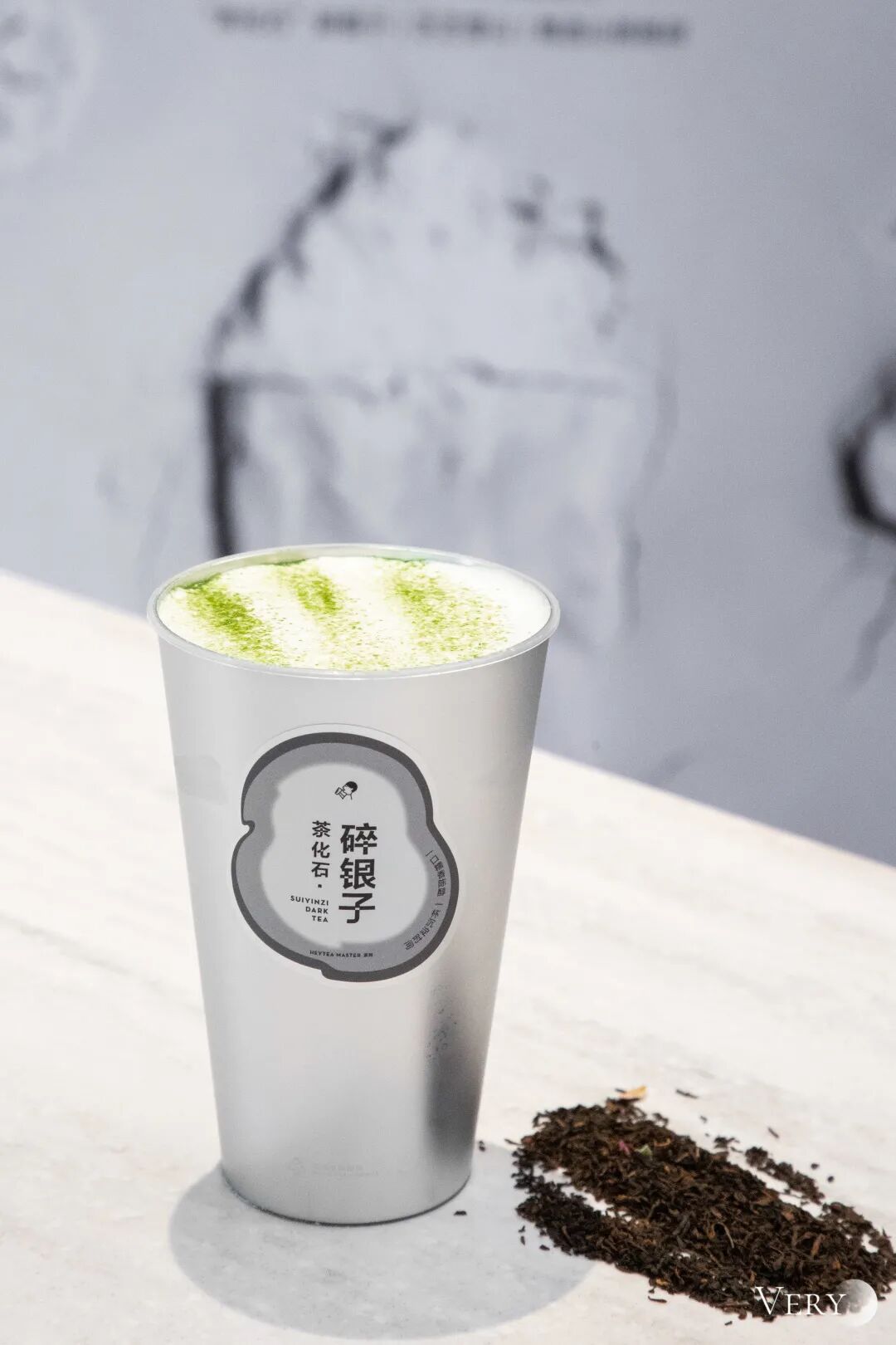 芝芝碎银子则是在碎银子茗茶的基础上,添加动物性奶油打制的芝士,最后撒上抹茶粉。