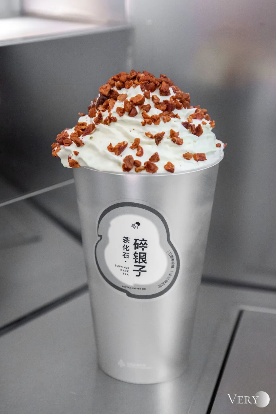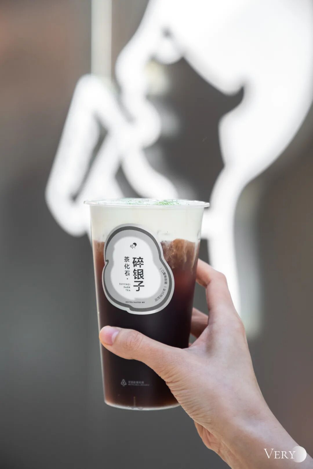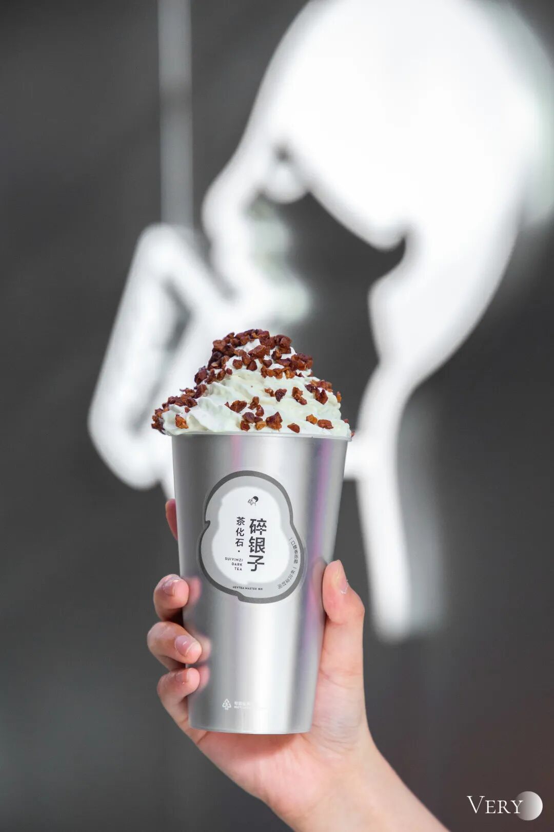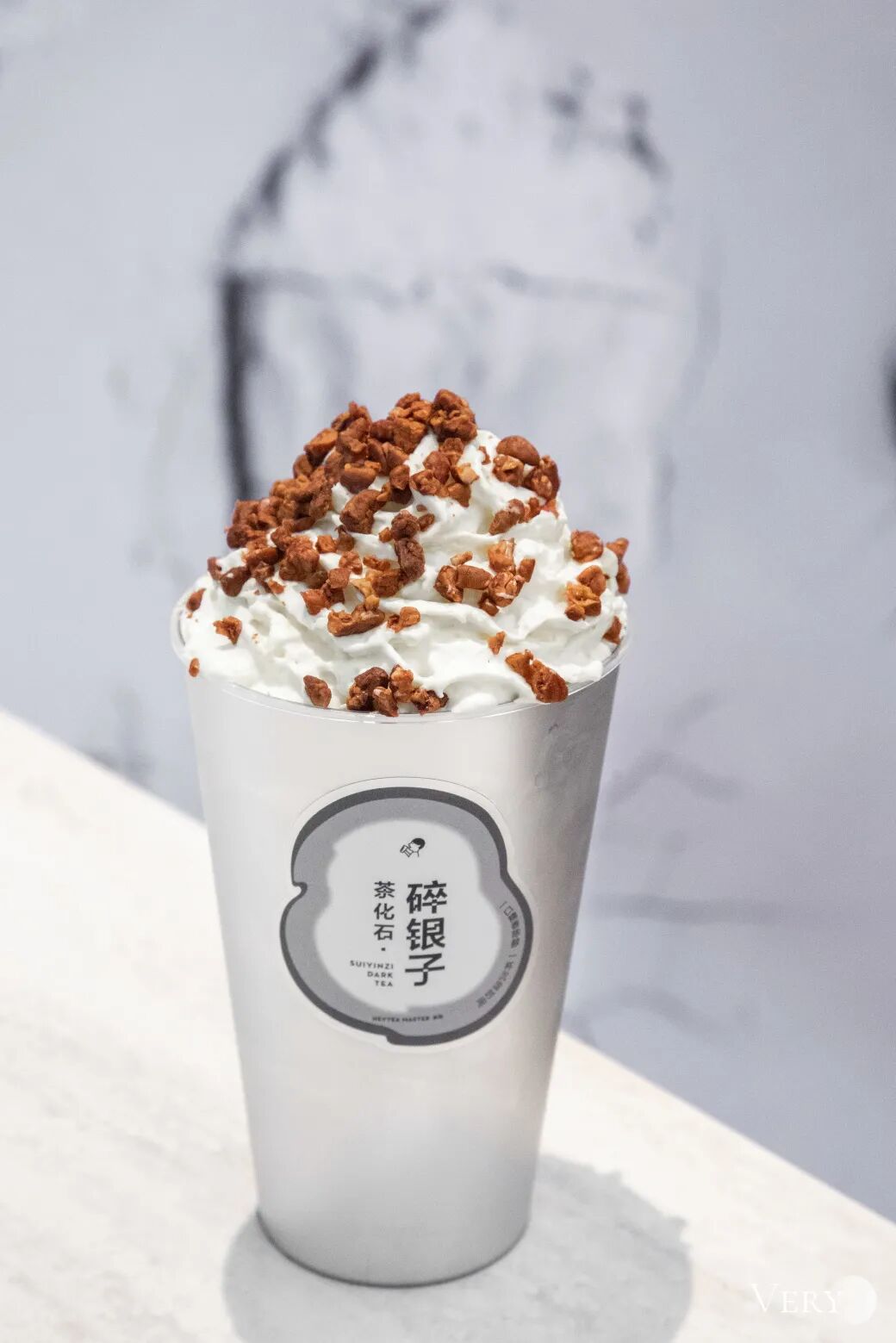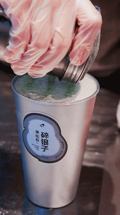 芝芝碎银子则是在碎银子茗茶的基础上,添加动物性奶油打制的芝士,最后撒上抹茶粉。