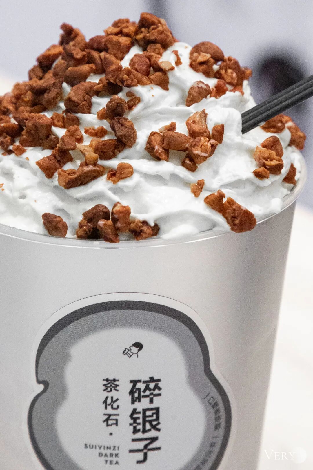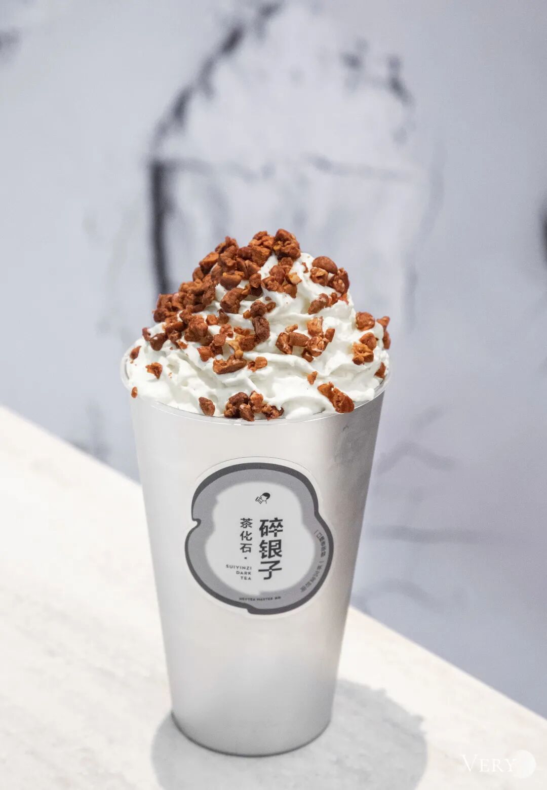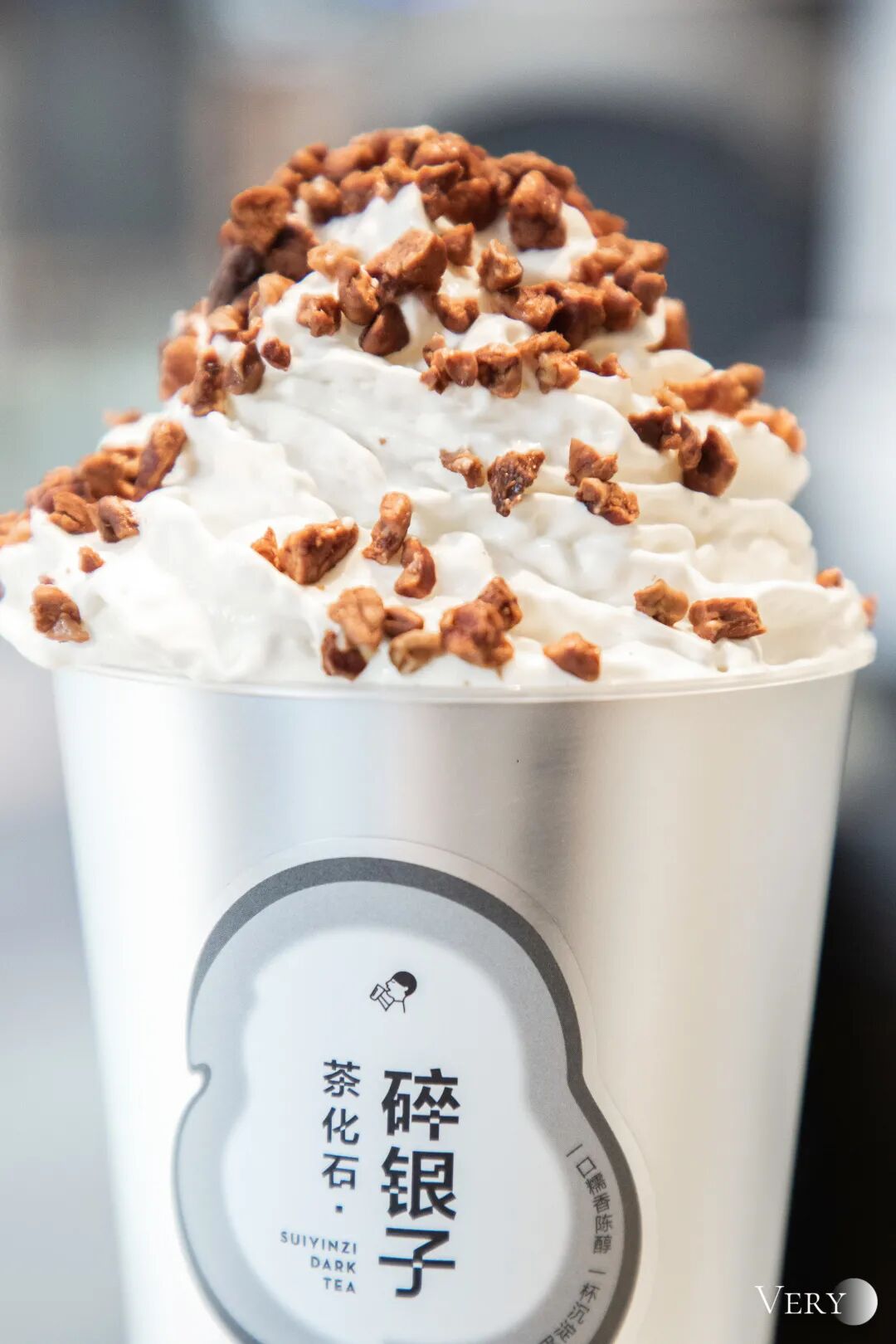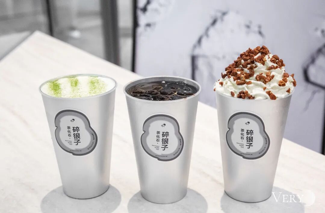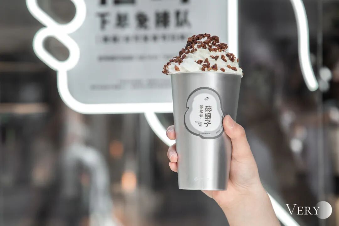 芝芝碎银子则是在碎银子茗茶的基础上,添加动物性奶油打制的芝士,最后撒上抹茶粉。