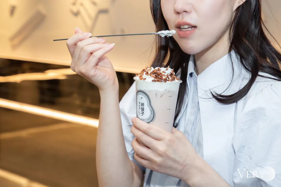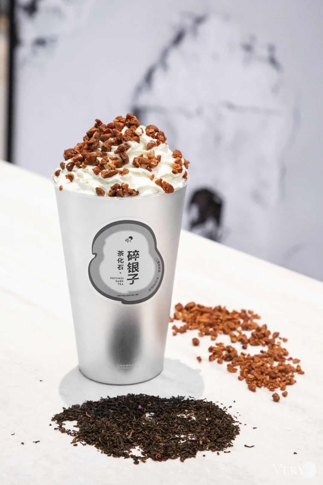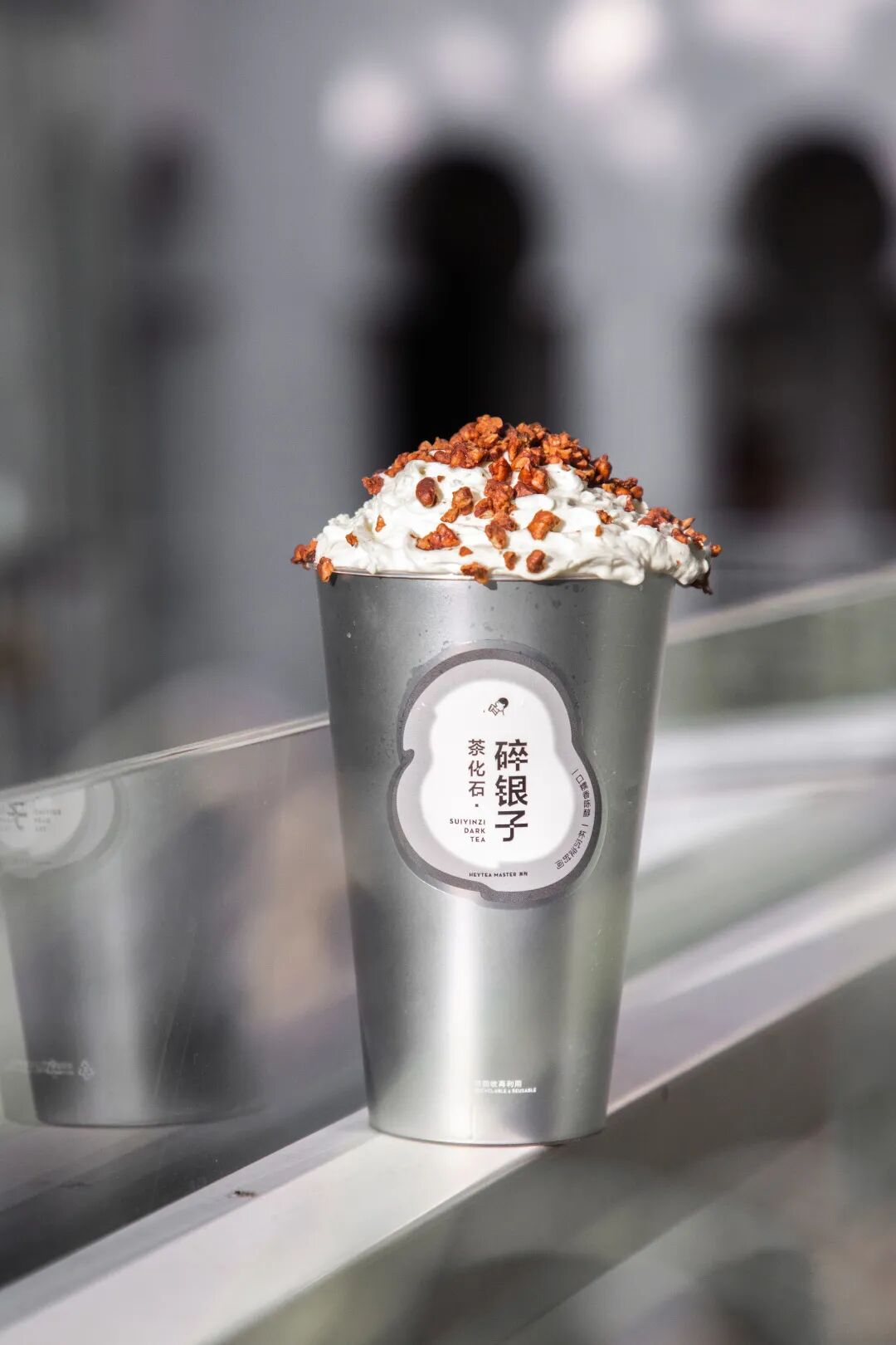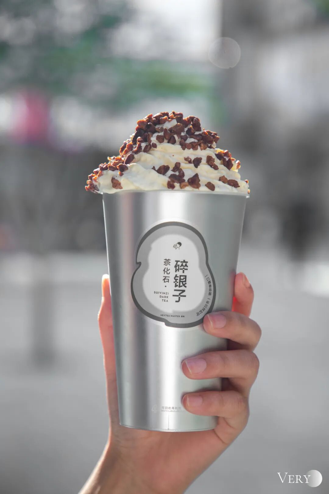 芝芝碎银子则是在碎银子茗茶的基础上,添加动物性奶油打制的芝士,最后撒上抹茶粉。