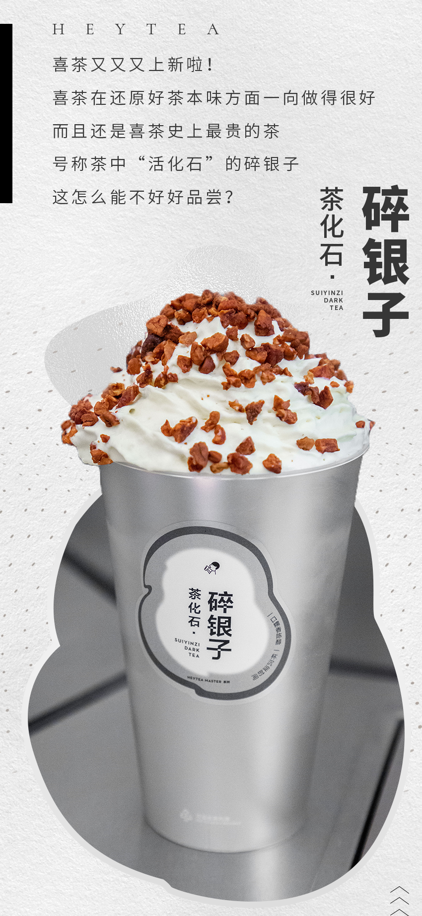磨碎后泡成茶汤,制成喜茶碎银子茶饮,三款各有风味。