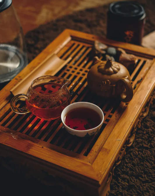 紫砂茶具(The Purple sand tea set)和白瓷茶具(white porcelain tea set)是专业的红茶冲泡茶具。准备90 - 95℃的水,水与叶片的比例为50:1。