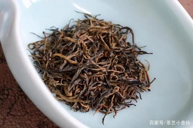 优质祁门红茶茶芽含量高,条形细紧的是小叶种,肥壮紧实的是是大叶种,色泽乌黑有油光,茶条上金色毫毛多,如条件允许可以观察其汤色,汤色红艳,碗壁与茶汤接触处有一圈金黄色的光圈,俗称“金圈”。