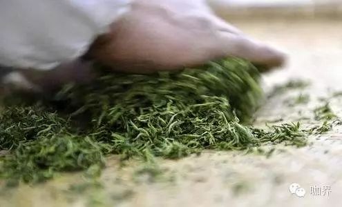 【摊晾】做红茶,每个环节都非常重要,第一个摊晾环节是非常非常重要的,其它茶叶的摊晾可以直接摊凉在地上,或者摊凉在竹垫上,但是红茶的摊晾必须有一晾摊槽,他差不多是与腰齐高的一个架子,三方立板,中间放上丝网,下面是中空的,整个槽的宽度大概是一米二,长度可以做任意长度,有一端是封死的,一端是用暖风来吹的,就是让这个茶叶的上下、表面跟底部全都得到充分地萎调。茶叶只有萎调好了,它才会有香味散发出来。当茶叶要萎调到一定程度,大概水分散失百分之十八到二十左右,手捏着是发软的,拿起来闻已经到芳香的那个程度,就可以开始揉捻了。
