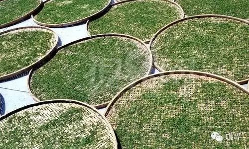 【发酵】发酵过程,是根据当时的气温和湿度来决定的。发酵的时间不是统一的,有可能六个小时,有可能九个小时,也有可能需要十二个小时。做红茶最关键的技术也就是在发酵的这个环节上,也会体现出一个师傅的水平高低。因为发酵到什么程度是好了的,是可以停止了的,每到位茶叶烘干后基本是青的,这个就不算红茶了,发酵过了,失去了茶叶本身的香甜味,这个红茶算做失败了。这个度非常难以把握,必须靠多年的经验来辨别。