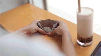 喜茶所提供的外带纸袋、饮品纸杯及纸杯套,均由可回收材料制成。其实,你可以用它们进行“艺术创作”,就能轻松实现环保循环使用。杯套剪一剪,立刻变身手机支架,追剧,喝茶,坐在窗前静候朋友。
