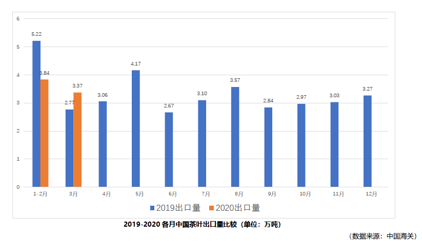 近日,我国海关公布了我国茶叶6月份的出口数据,至此,我国茶叶2020年上半年出口数据已全部出炉,中外茶商为大家整理一下今年各个月份出口情况。