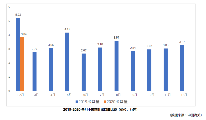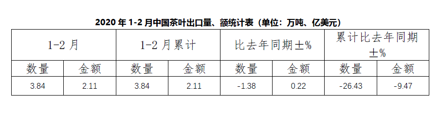 从1-2月份出口情况看,由于全球范围内的疫情以及国际贸易的影响,我国茶叶出口受到了负面影响。