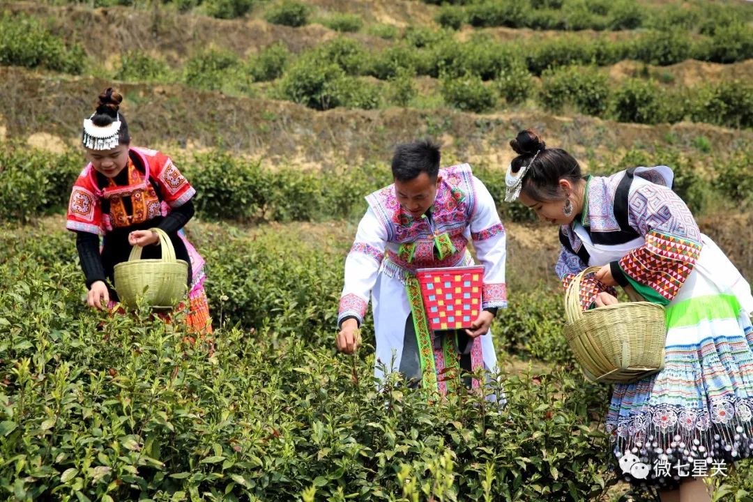 △青场镇初都河茶场,苗族同胞采茶(资料图)