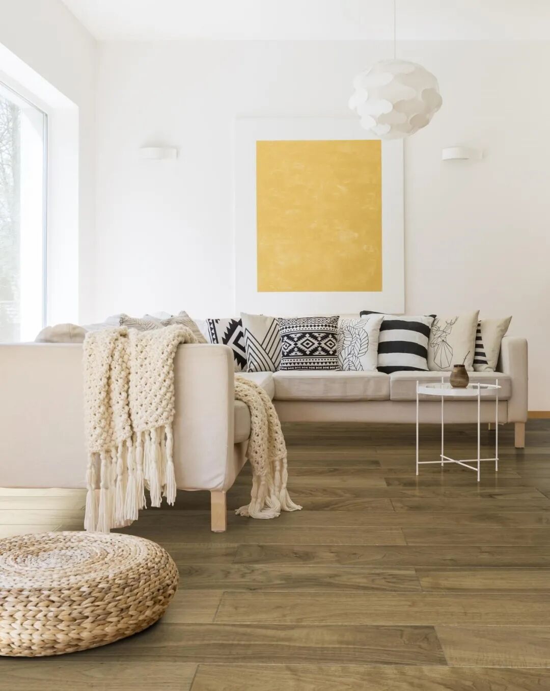 研发团队开发的这款AN1004作为暖色系地板给人以亲近的心理感受,经典的黄咖从视觉上给家居空间带来轻松、舒适的氛围。